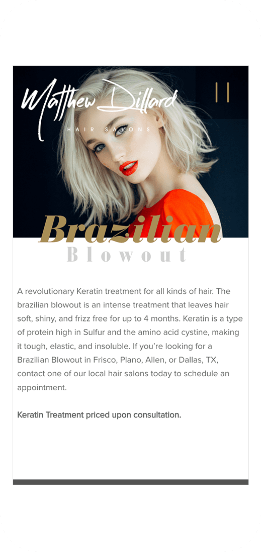 Renowned colorist and stylist Matthew Dillard has worked behind the chair for the past seven years training with some of the top color companies in the world such as Loreal, Redken, Goldwell, and Schwarzkopf. We designed and developed a custom website to reflect Matthew’s mastery.